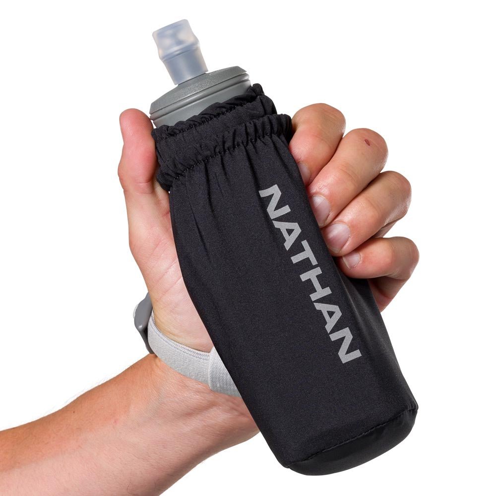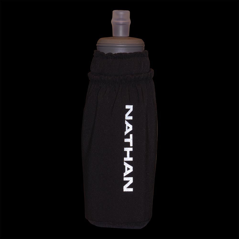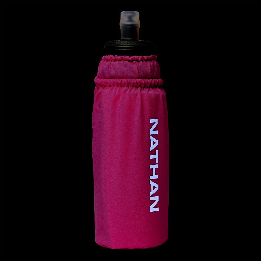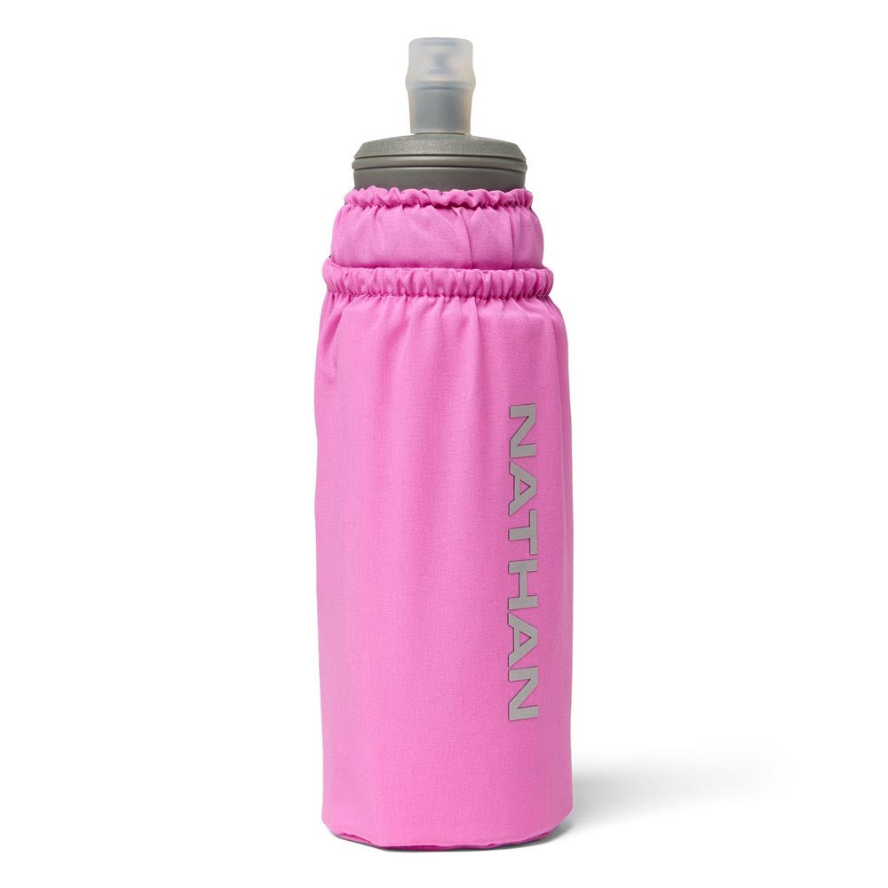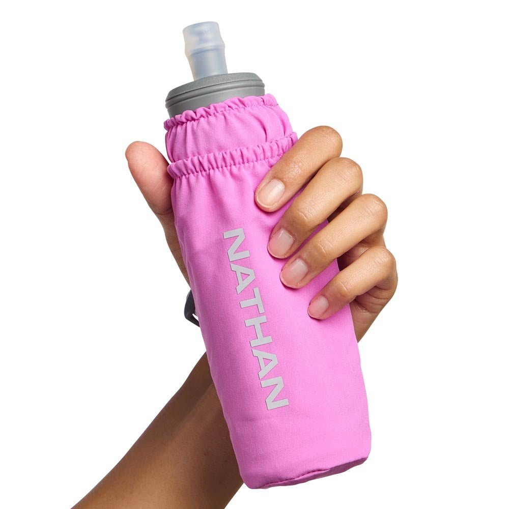 The Pinnacle Soft Flask 420ml/14oz Handheld features Nathan's advanced Exo Shot flask technology in an updated carrier and grip-free strap for unmatched comfort. It boasts an expandable pocket for keys and essentials, ideal for marathons, trail runs, hikes, climbs, and more.