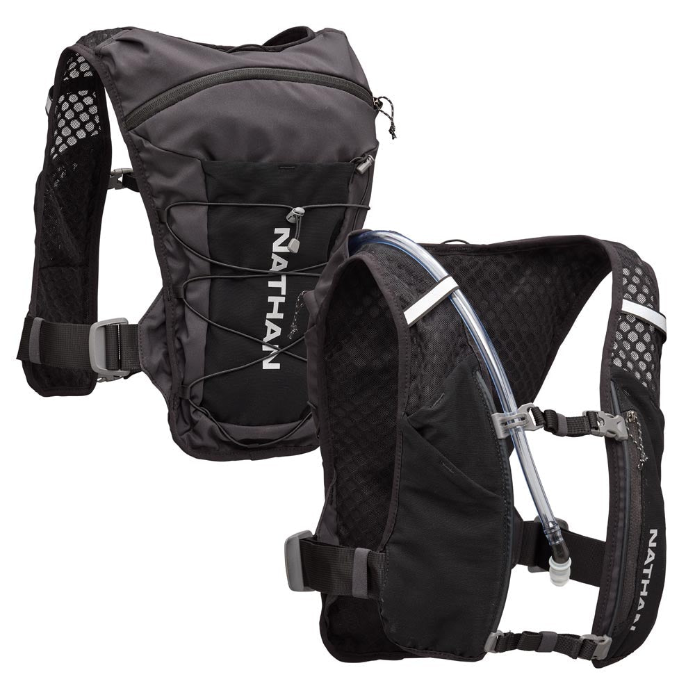 Comes with 1.5L bladder and hose stored in back interior pocket.