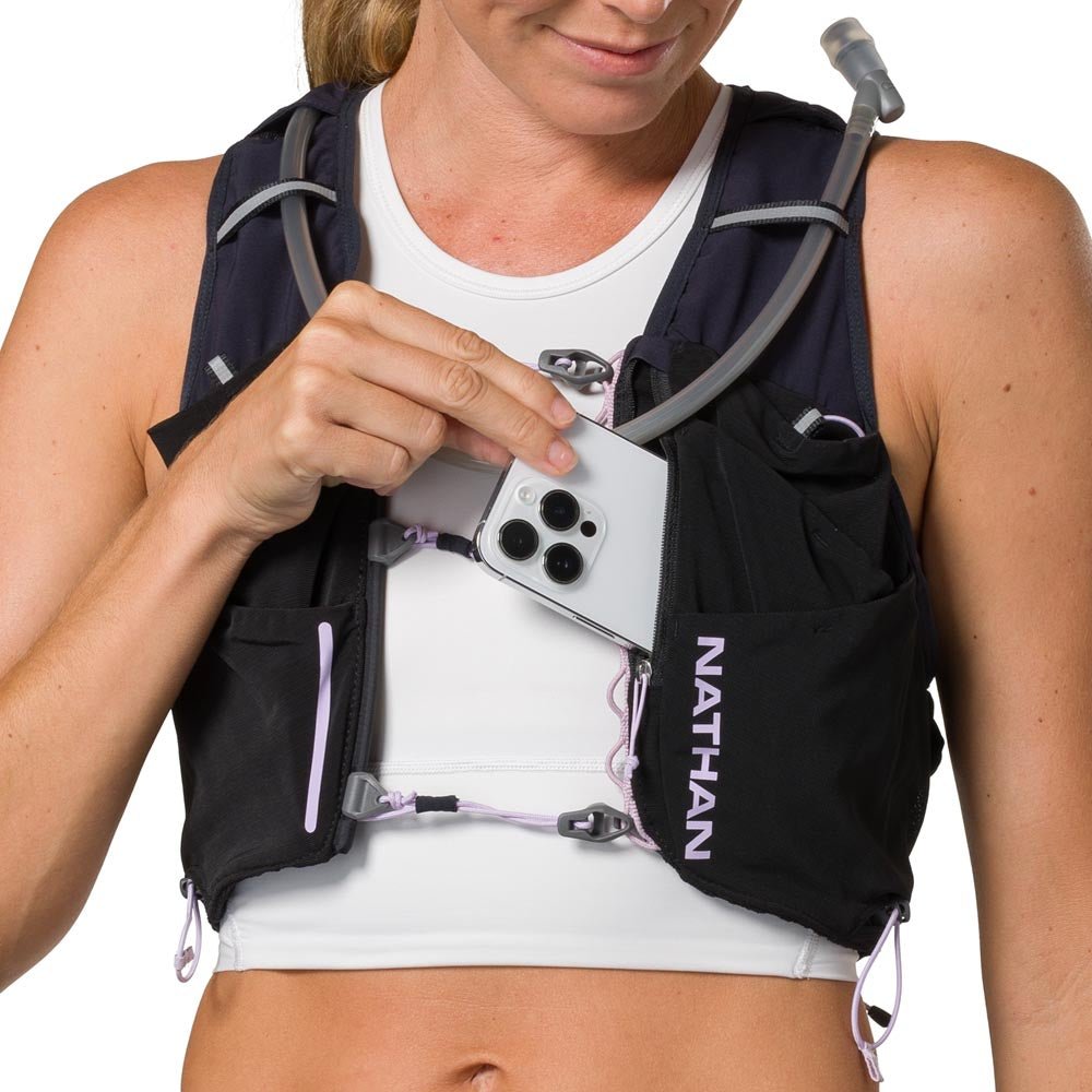 The Women's Pinnacle Pro 6L blends style and function with its innovative slider sternum cords and Quick-Fit™ adjustment system that allow to you dial in the perfect fit while on the run. Crafted from soft, yet durable quick-dry fabric plus a breathable air mesh interior, that guarantees superior comfort. The power mesh compression pockets enhance storage options are easy to access and secure. It includes two 20oz / 592ml Nathan x Hydrapak soft flasks with extended straws for easy access to fluids.