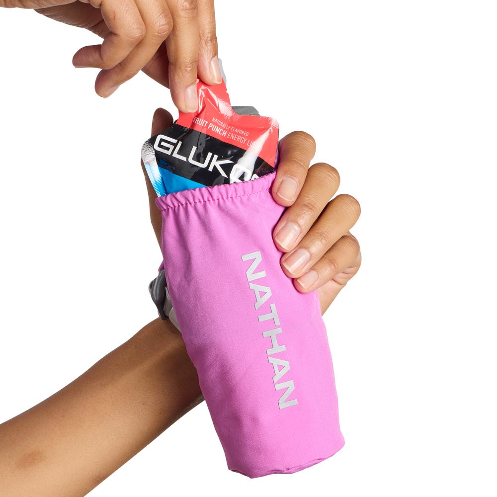 The small, wrap-around pocket with an elastic opening easily stores essentials like keys or nutrition.
