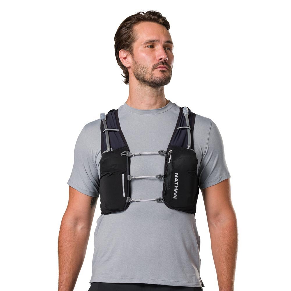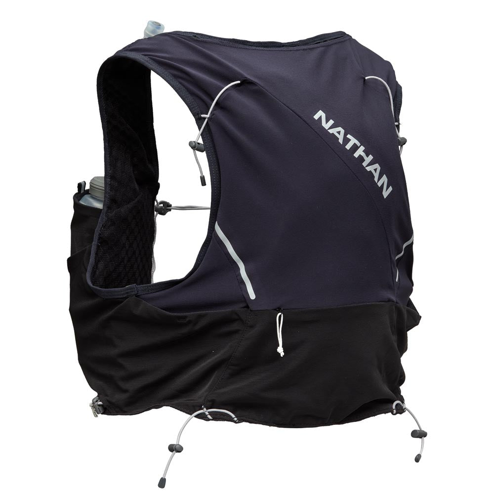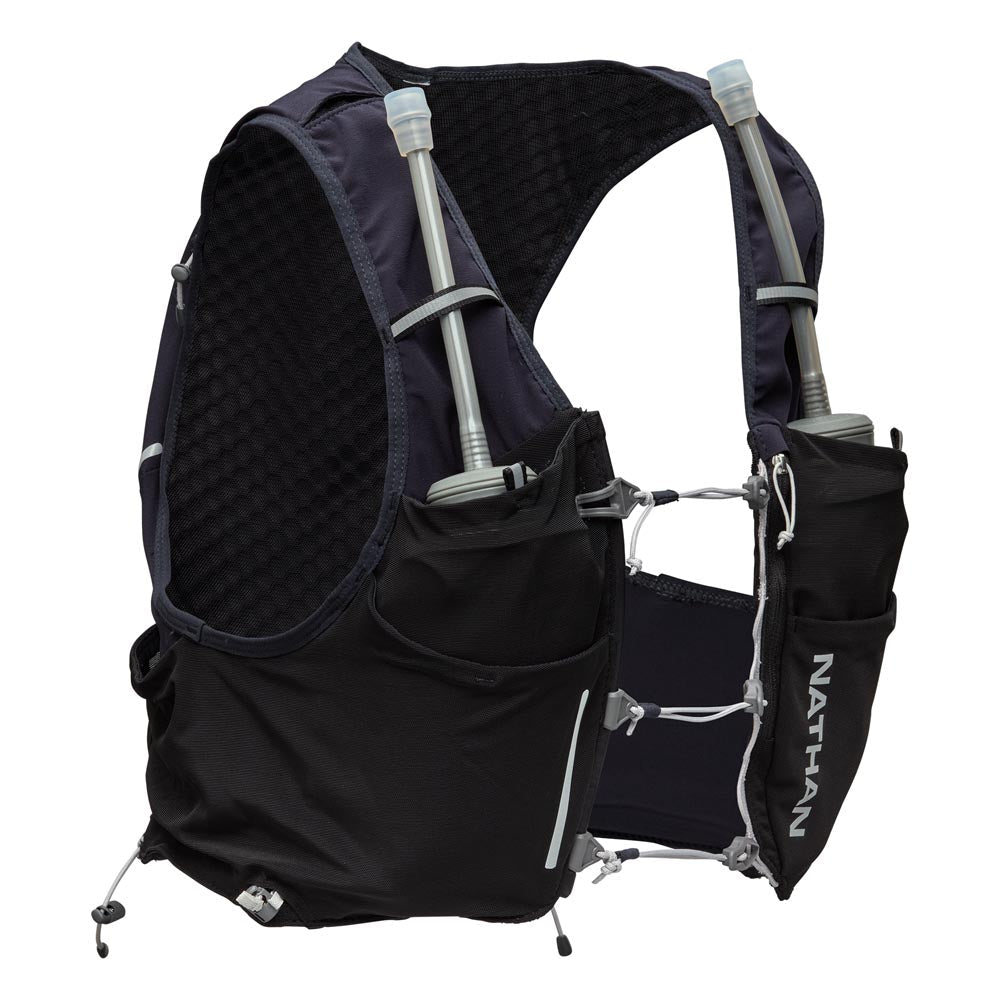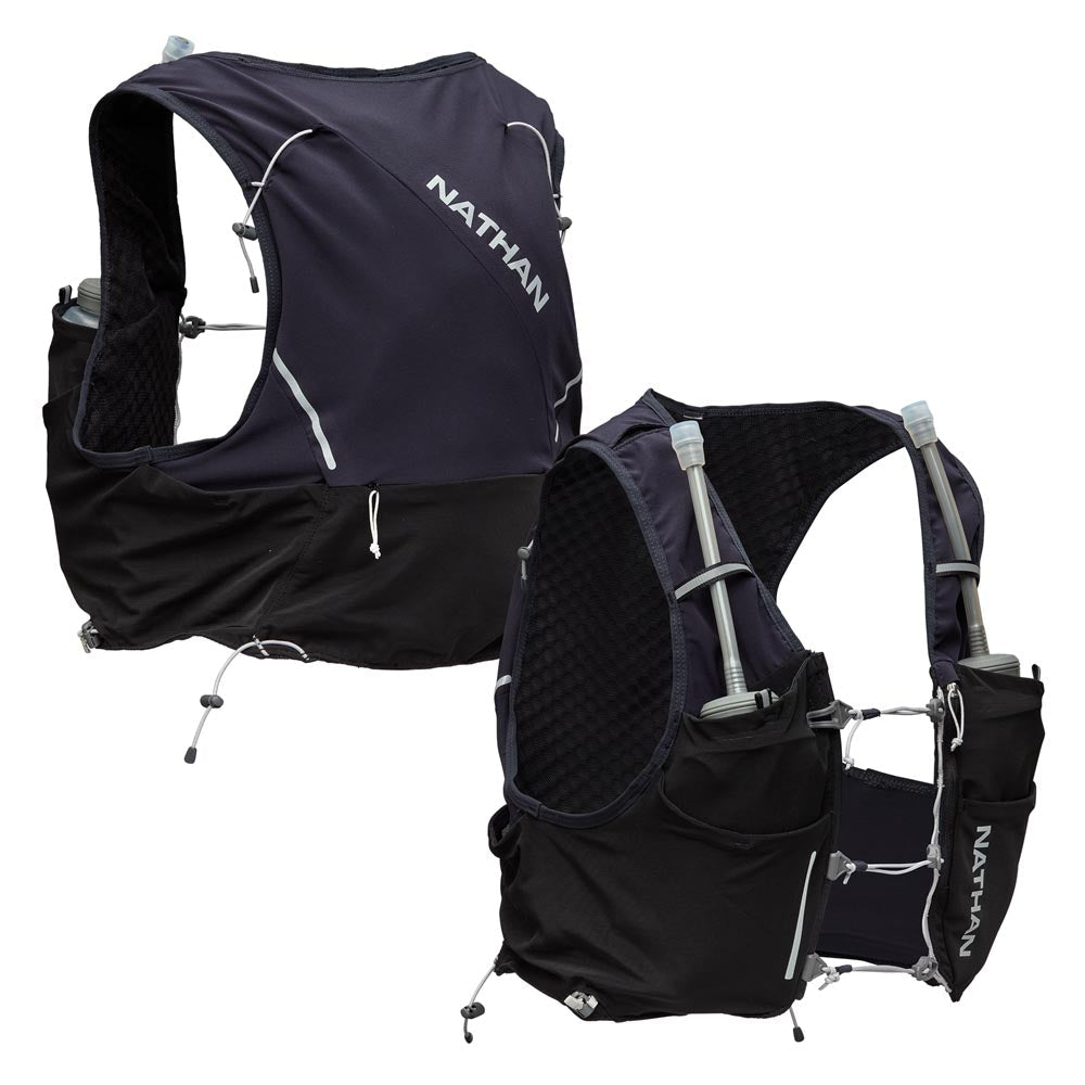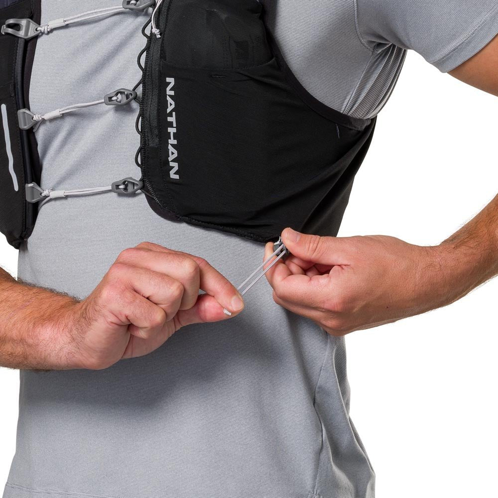 The Pinnacle Pro 6L boasts sleek slider sternum cords and Quick-Fit™ adjustment system that allows to you dial in the perfect fit while on the run. Crafted with soft, durable, and quick-drying fabric, alongside a breathable double layer air mesh interior, ensures supreme comfort. The power mesh compression pockets enhance storage options are easy to access and secure. It includes two 20oz/592ml Nathan x Hydrapak soft flasks with extended straws for easy access to fluids.